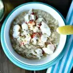 This lobster risotto recipe with white wine, grilled lobster, and fresh lemon is the perfect summer dish for date night or any get together and oh so easy to make.